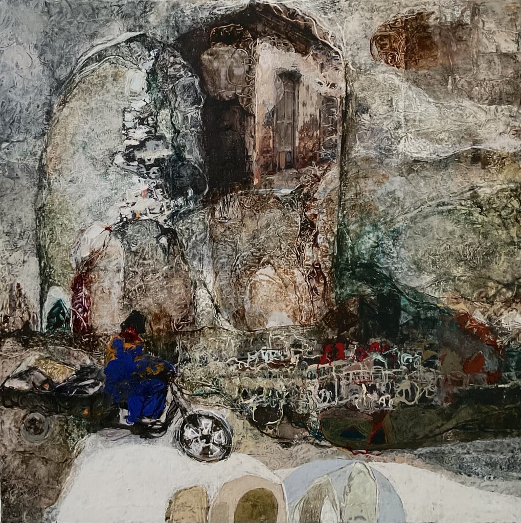 ADDIS GEZEHAGN : FLOATING 4, 2024 | 18” x 18” | Acrylic and Paper on Canvas