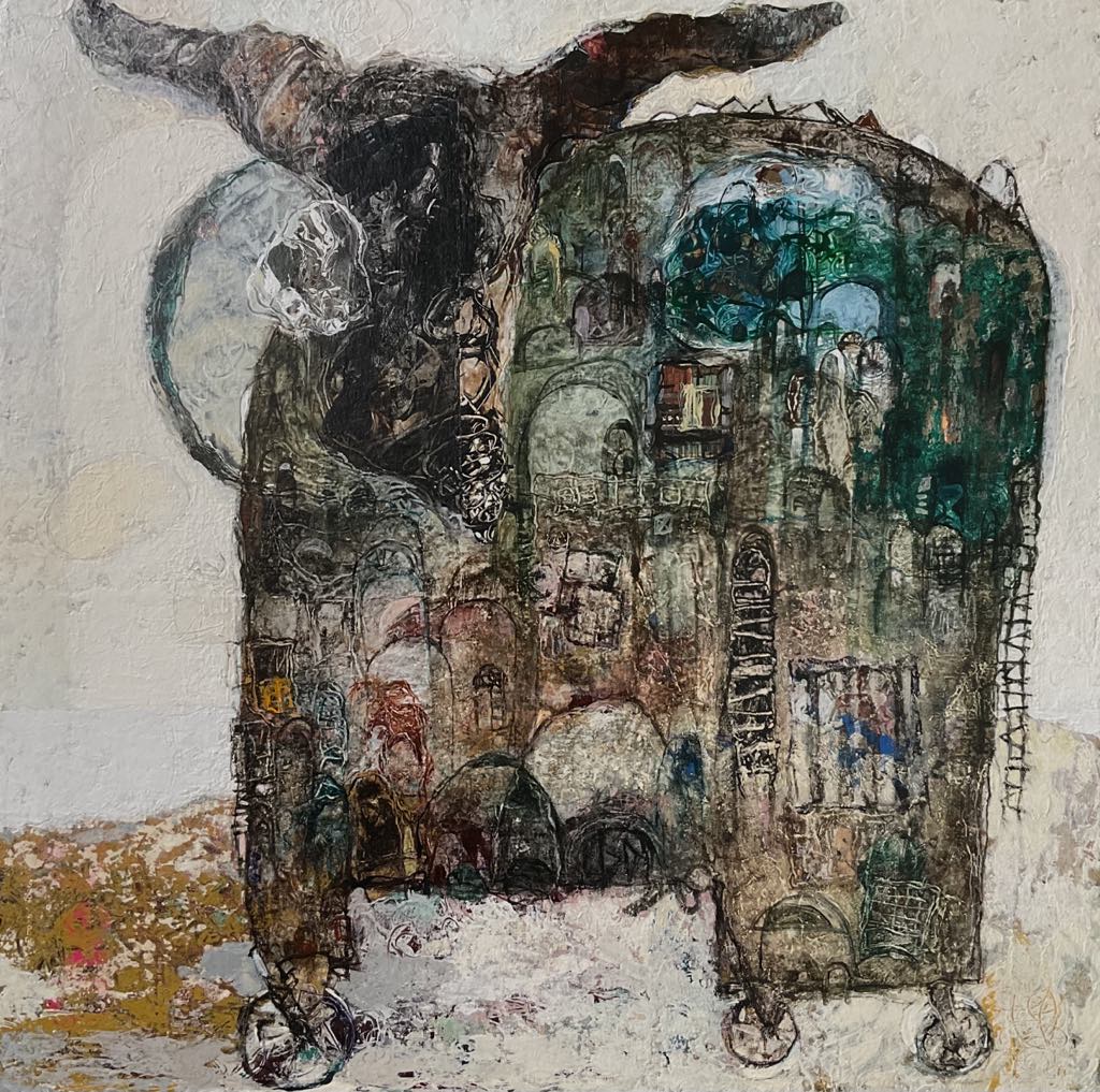 ADDIS GEZEHAGN : FLOATING 6, 2024 | 18” x 18” | Acrylic and Paper on Canvas