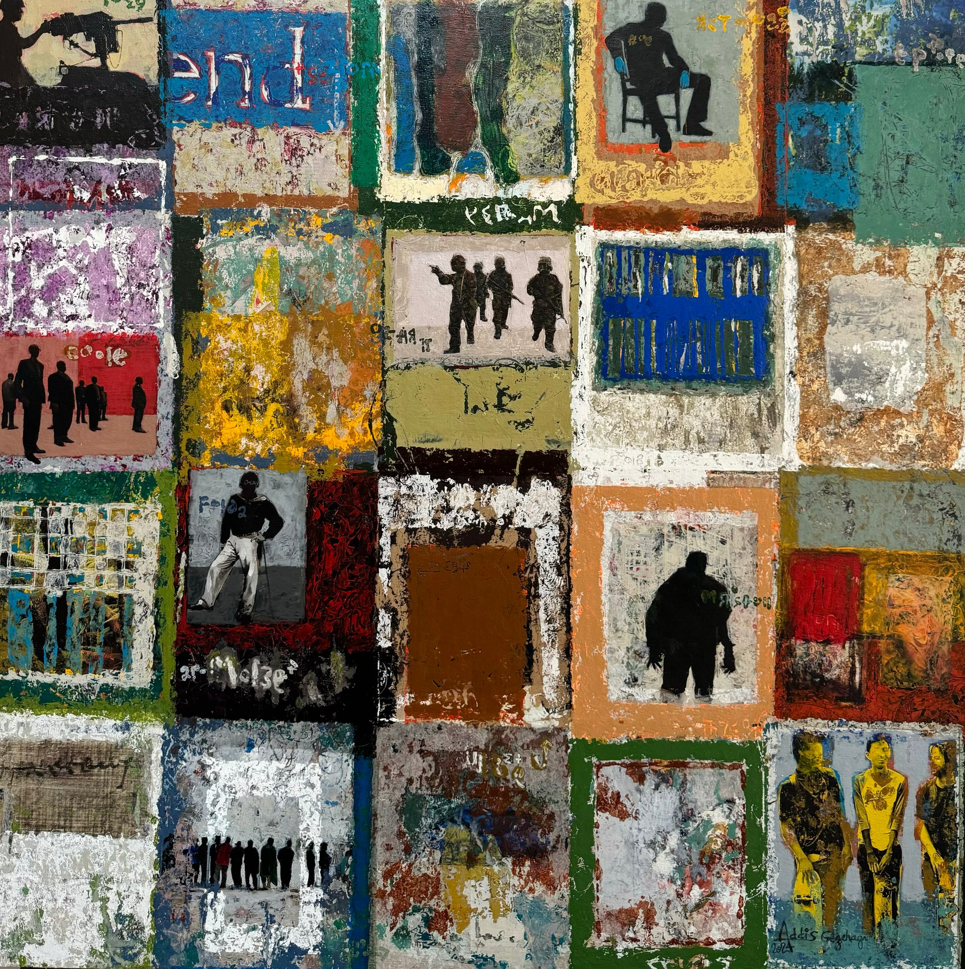 ADDIS GEZEHAGN : PRESENCE, 2024 | 36” x 36” | Acrylic and Paper on Canvas