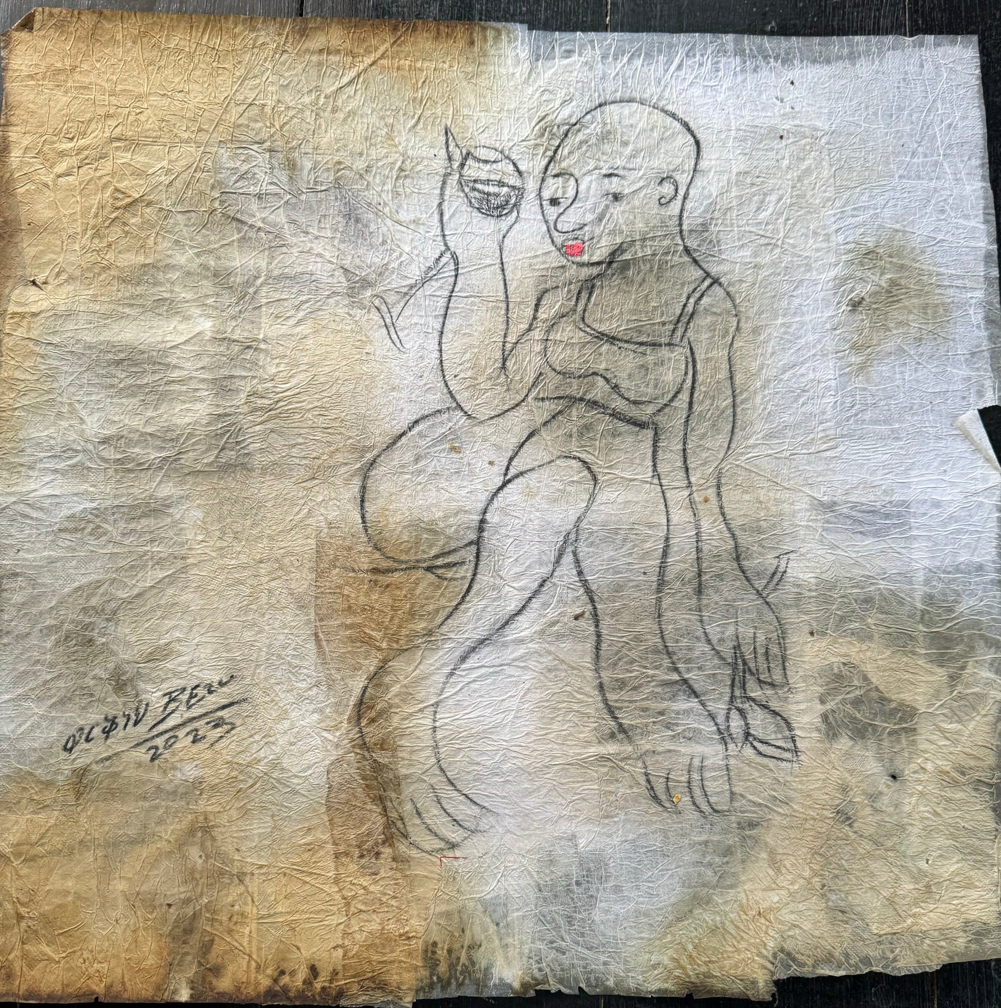 WORKNEH BEZU : I AM WAITING FOR MY LOVE, 2024 | 26” x 18" | Mixed Media on Paper